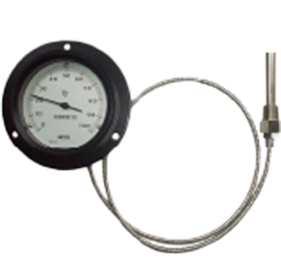 液体充満式温度計は屋内外で使用可能な温度計になります。直射日光などの外気温を補正する機能を有しております。 温度計設置場所が高い場所など、直結型では視認性が悪い箇所に最適です。